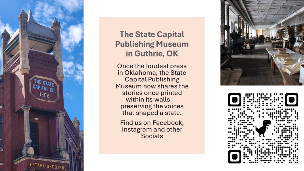 The Oklahoma Archivists Association’s fifth biennial Archives Bazaar took place on October 25, 2025, from 11:00 AM to 2:00 PM at Science Museum Oklahoma. This engaging and family-friendly event was free and open to all, offering a rare opportunity to connect with the people and institutions working to preserve Oklahoma’s history. Archives, museums, libraries, and cultural centers from around the state were on hand to share unique historical collections and public resources. We were grateful to the Oklahoma Museum Association and Science Museum Oklahoma for generously sponsoring the event and helping make Oklahoma’s history more accessible to everyone.